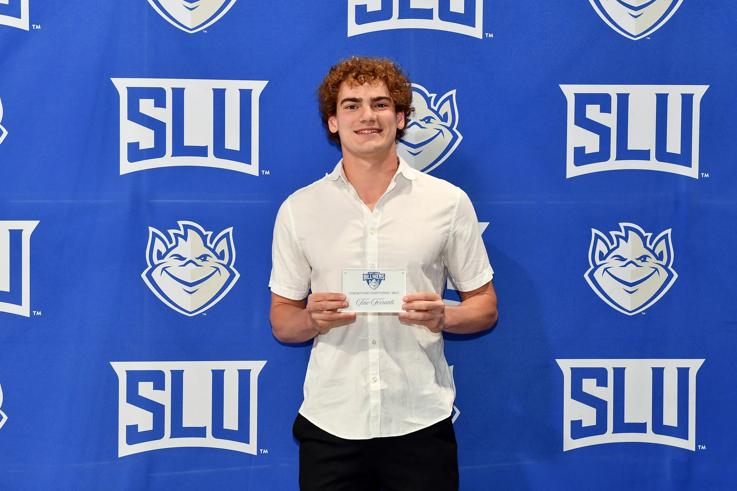 Picture taken at the annual SLUSPY’S event of me winning the Strength and Conditioning Award on April 22, 2025